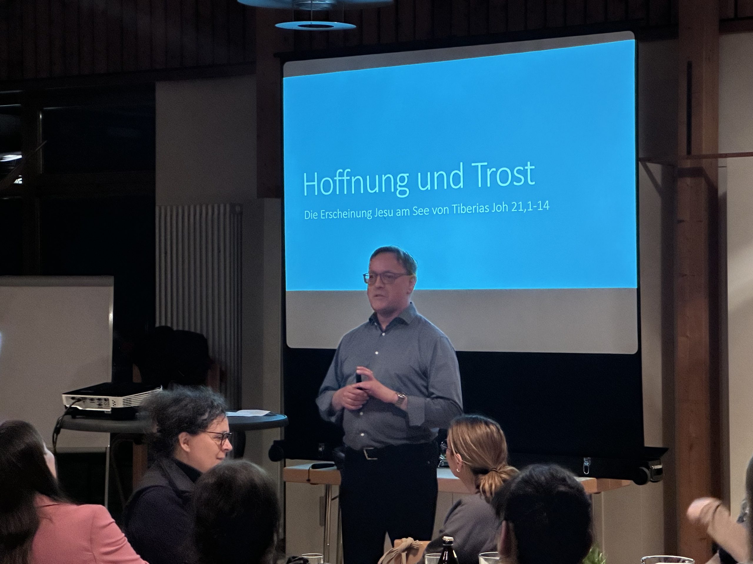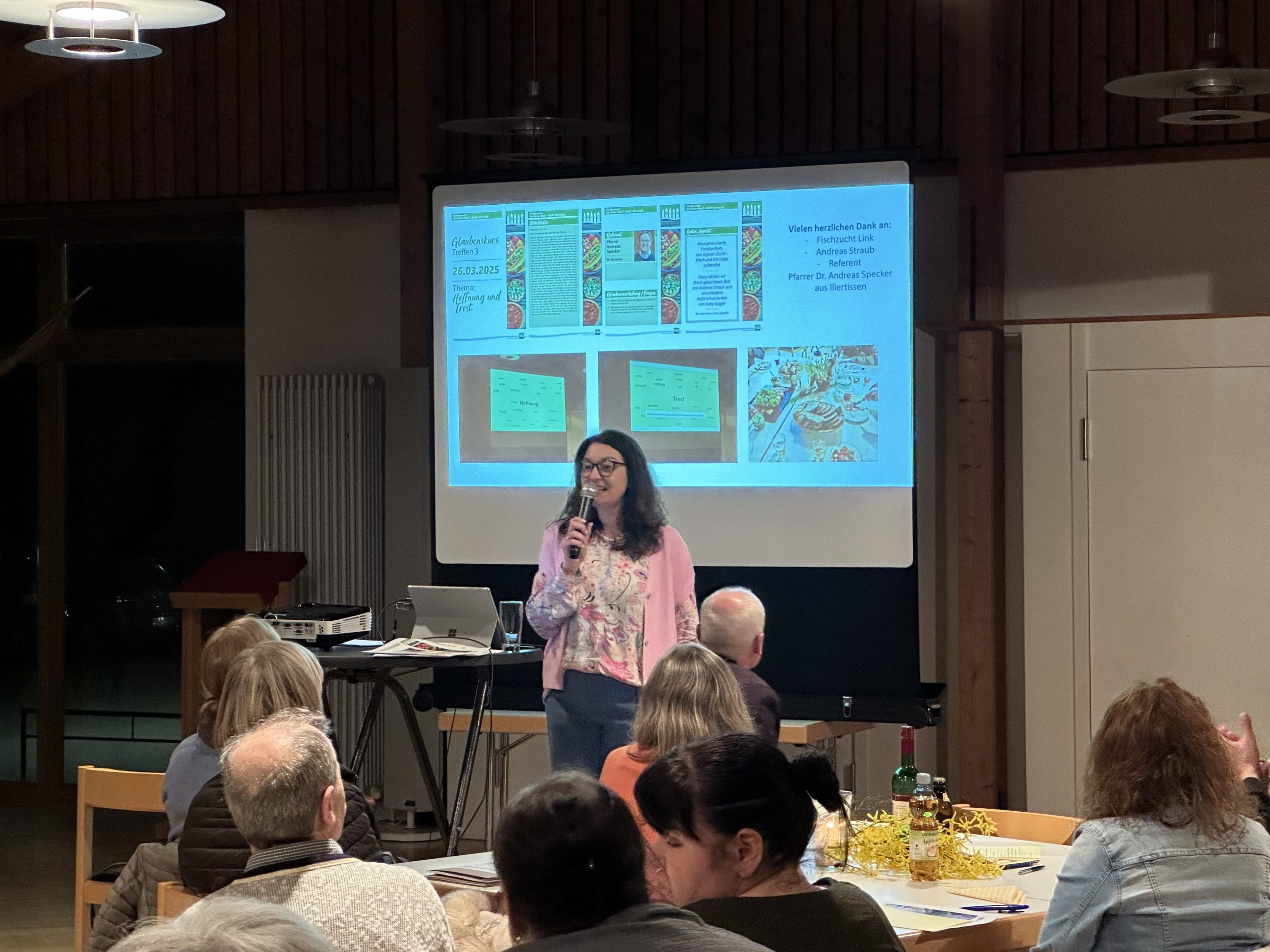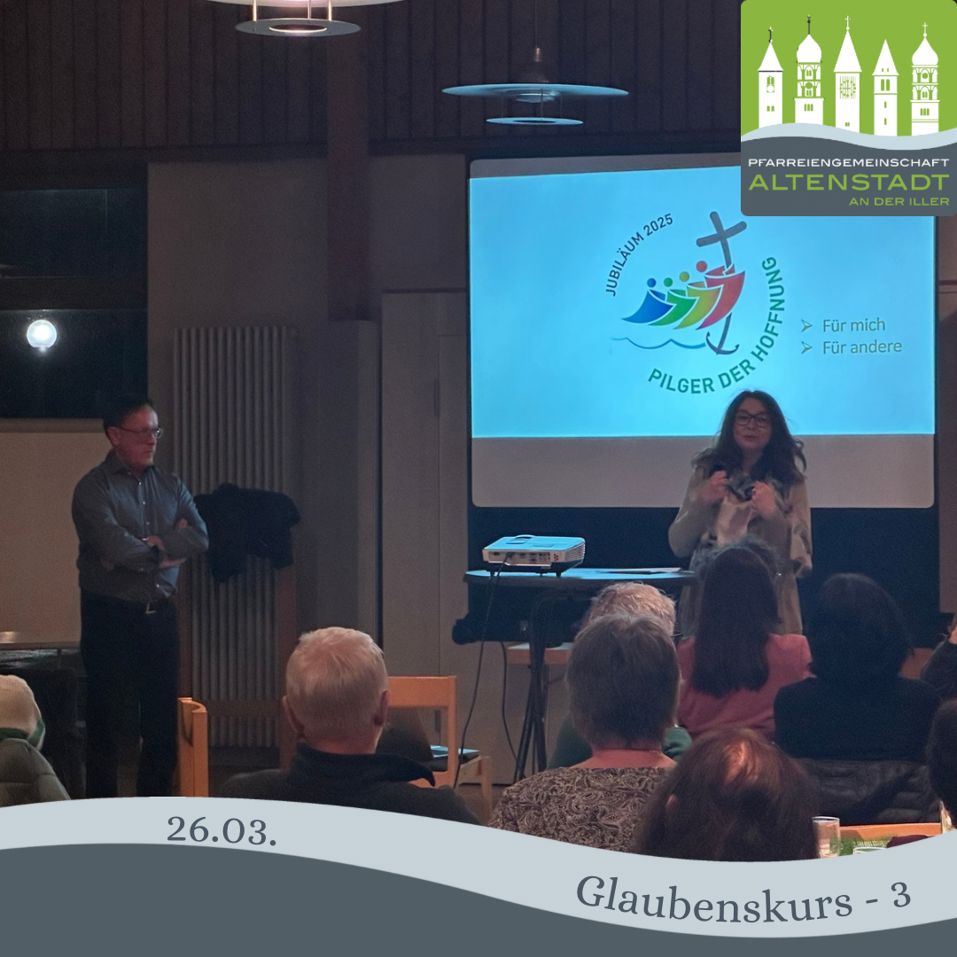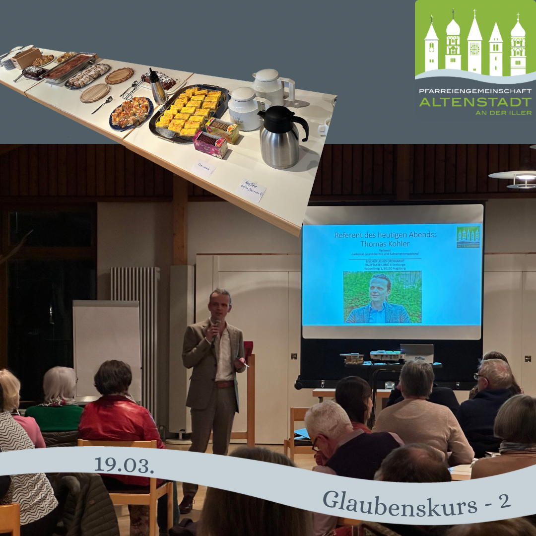 An unserem dritten Glaubenskursabend konnten wir zum Thema „Hoffnung und Trost“ aus der Nachbar-PG Illertissen Pfarrer Dr. Andreas Specker als Referent begrüßen. Anhand verschiedener Bibelstellen über das Thema Hoffnung und über die Begegnung des Auferstandenen mit den Jüngern beim Fischfang führte Herren, sind die Thematik Hoffnung und Trost ein. Nicht die Vergangenheit, die man nicht genauso wiederherstellen kann, macht Hoffnung, sondern der Blick in die Zukunft. Dabei ist die Gemeinschaft wichtig, untereinander und auch mit Jesus Christus, die sich oftmals bei einem gemeinsamen Essen ausdrückt-ob zu Hause oder bei der Messfeier. Mit den Fragen, was uns im Glauben Hoffnung gibt und woraus diese Hoffnung sich speist, gingen die Gruppen in die weiteren Gespräche.