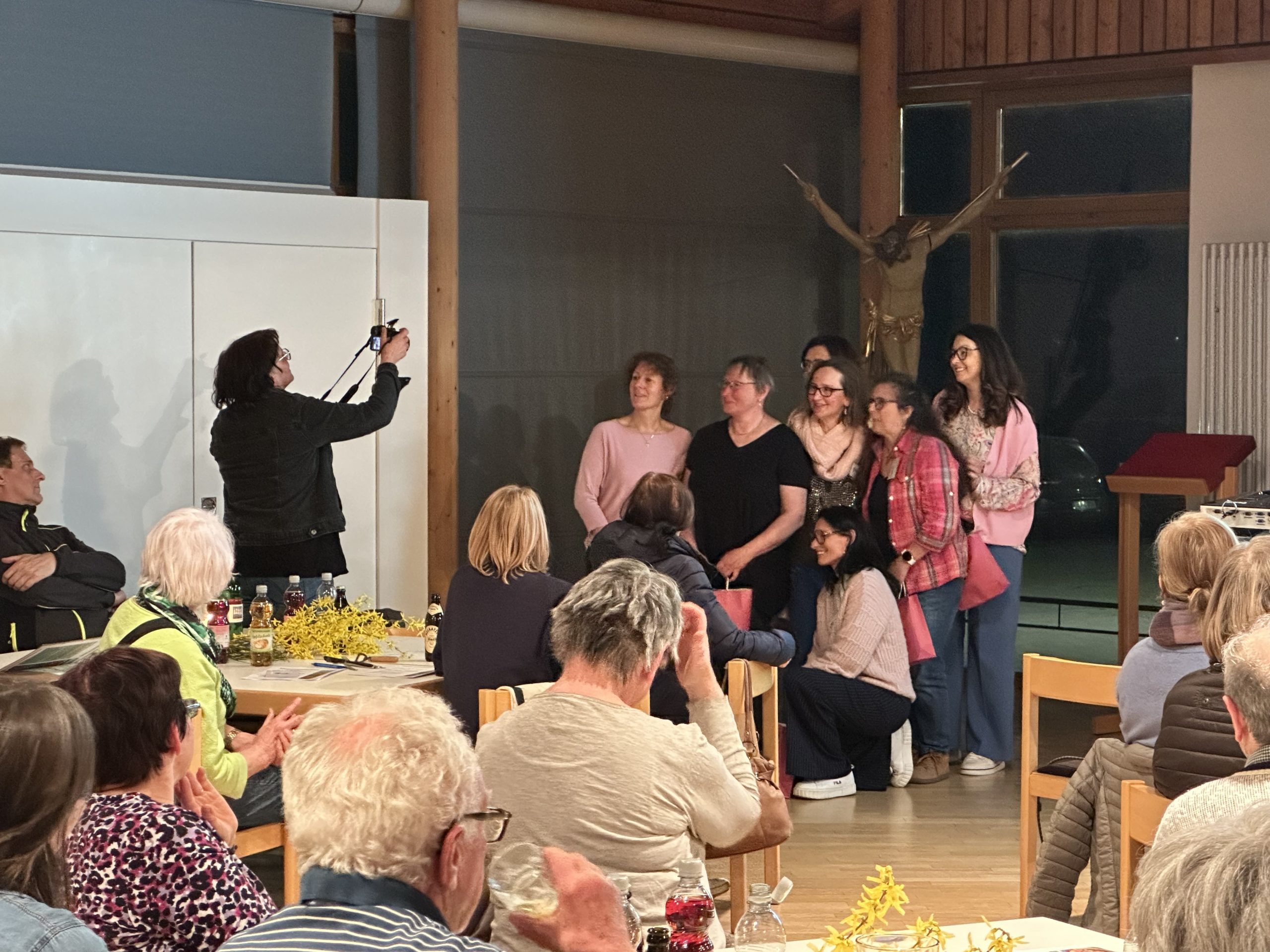 Am Ende des Kurses stand dann auch der Große Dank an alle Mitwirkenden: Zunächst allen, die sich um das leckere Essen der Abende gekümmert haben (hier auf dem Foto Frau Fröhlich mit ihrem Team, die den 4. Abend bekochten), anschließend dem Vorbereitungsteam, das schon seit Monaten den Glaubenskurs gemeinsam vorbereitet und erdacht hat, auch für die Unterstützung des Pfarrbüros und von Pfarrer Kleinle wurde gedankt. Der letzte und größte Dank aber gilt Barbara Zanker für ihre großartige Unterstützung und unserer Pfarrreferentin Christine Schneider, die mit Begeisterung und viel Liebe diesen Glaubenskurs initiiert und veranstaltet hat und in den letzten Wochen jede freie Minute in diesen Kurs investiet hat. Es steckt viel Zeit, viele Überlegungen und Absprachen dahinter – allen, die dies ermöglicht haben: Vergelt´s Gott!