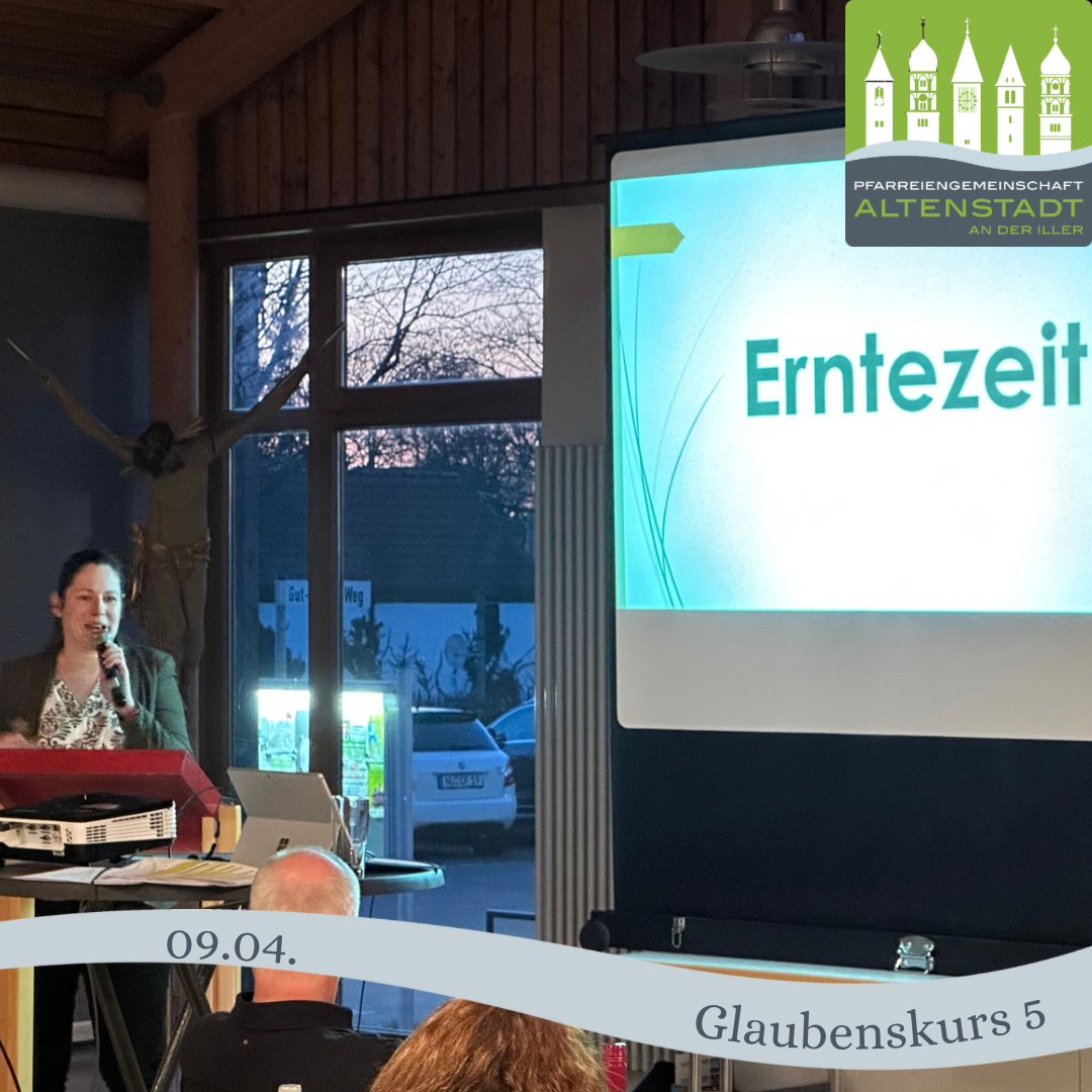 Unseren 5. und letzten Glaubensabend schloss Sandra-Maria Lernbecher , Theologische Referentin der Abteilung Evangelisierung des Bistum Augsburg, mit einer Erntezeit ab. Anhand des Gleichniss vom Sämann entfaltete Frau Lernbecher, was eine Pflanze alles zum Wachstum benötigt, und was sie daran hindert. Dies ist ein guter Vergleich für uns als Christen, was wir dafür benötigen, als Christen gute Frucht zu bringen und was uns daran hindert. Mit persönlichen Erfahrungen aus ihrem eigenen Glaubensleben bereicherte sie ihren Vortrag.