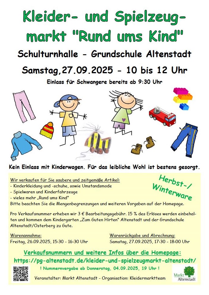 • Sind Sie sich nicht sicher, wie Ihre Verkaufsnummer beim letzten Mal lautete? Kein Problem, wir helfen Ihnen gerne weiter über die Mail-Adresse: kleidermarkt-altenstadt@web.de