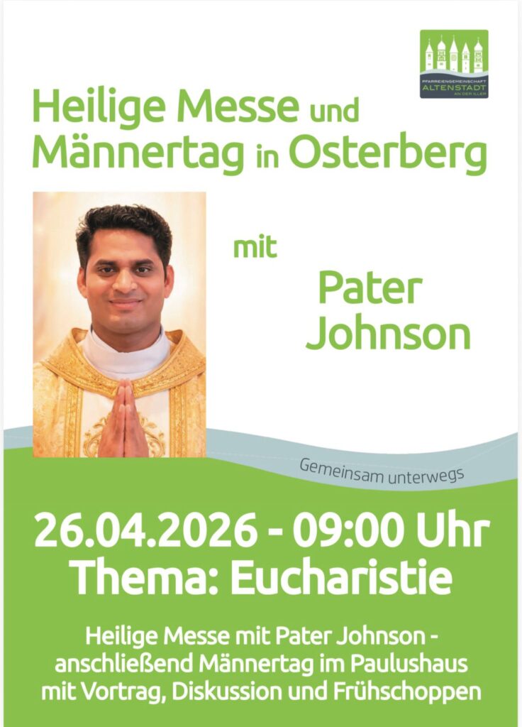 Heilige Messe mit Pater Johnson: anschließend Männertag im Paulushaus mit Vortrag, Diskussion und Frühschoppen am 26.04.2026 um 09:00 Uhr
